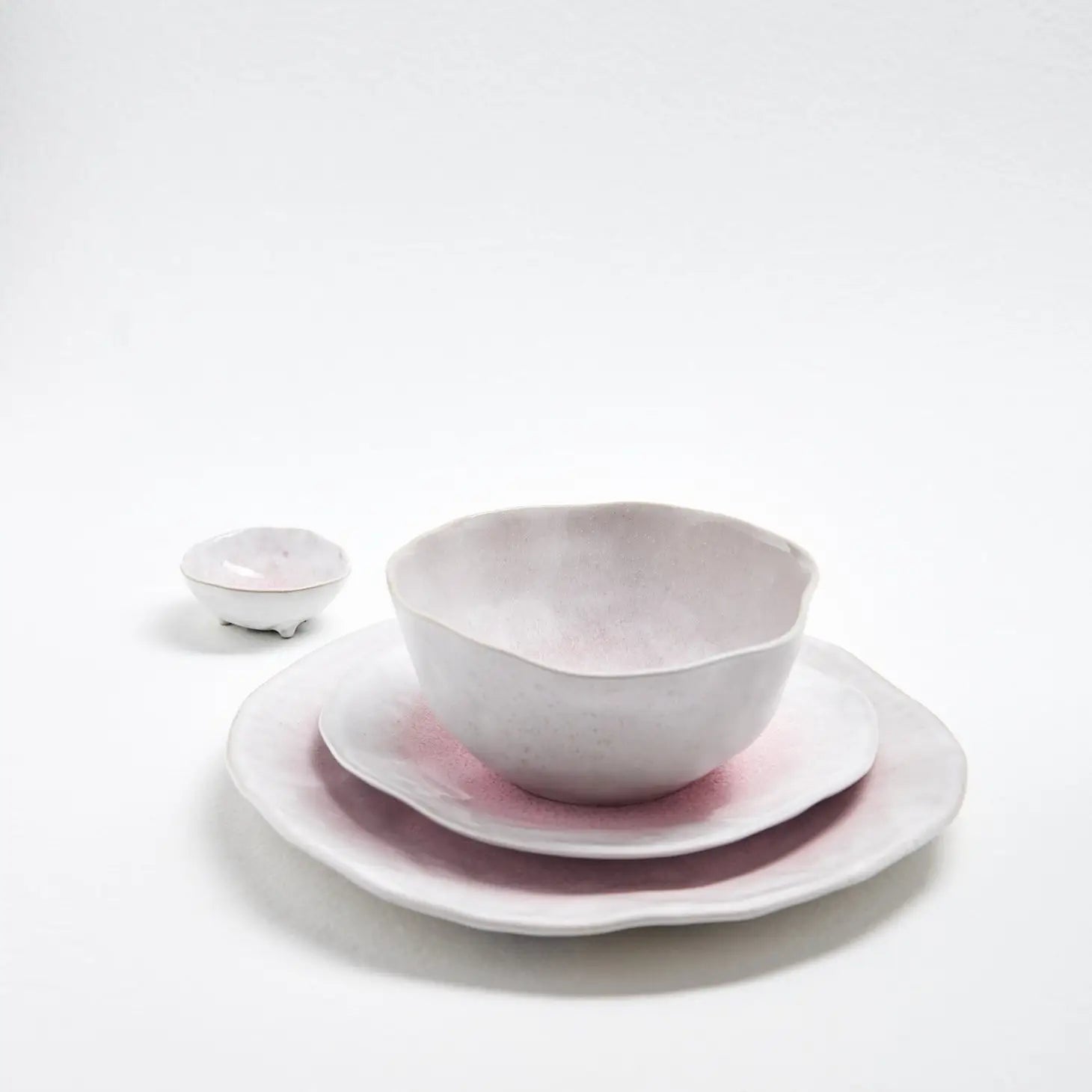 Introducing our beautiful new collection of organic shape tableware, crafted with the utmost care and attention to detail. This stunning collection features a beautiful white matte finish on the outside, with a delicate light pink glaze on the inside, creating a beautiful contrast that is sure to impress.