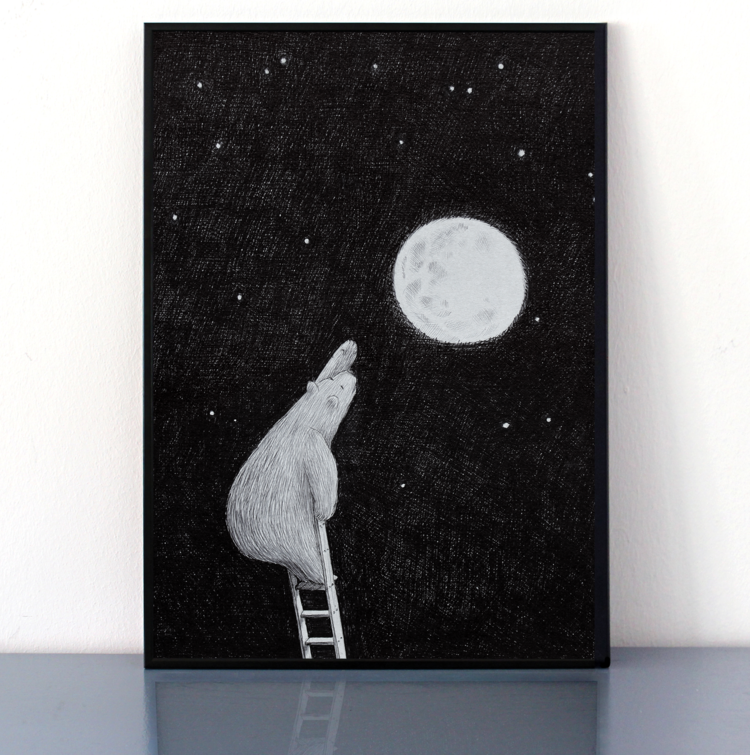 Morten Løfberg is a visual artist living and working in Copenhagen. He graduated from The Danish School of Media & Journalism in Copenhagen in 2014, and have been working fulltime with drawings since then. Morten makes very large scaled drawings with nothing but ballpoint pens on grey recycled cardboard. The works can take weeks and even months to do because of their size and detailing. These drawings are then made into posters in different sizes. His imagery explores a world of animals in a curius and respectful way. Animals have so much expression and combined with references to everyday life they become even more relatable. This combination makes them great for both the living room and the kids room.