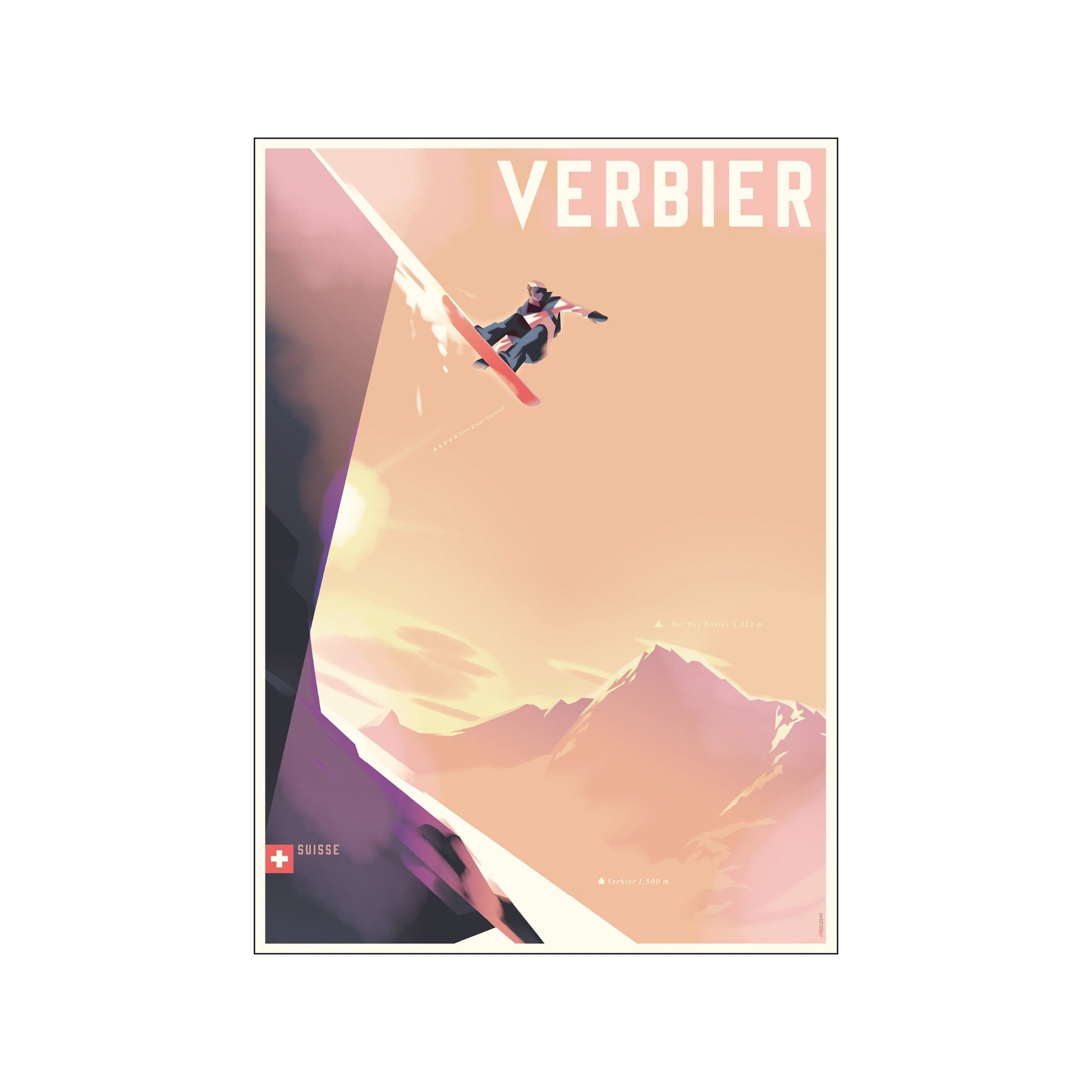 Verbier Snowboarder Art Poster by Mads Berg