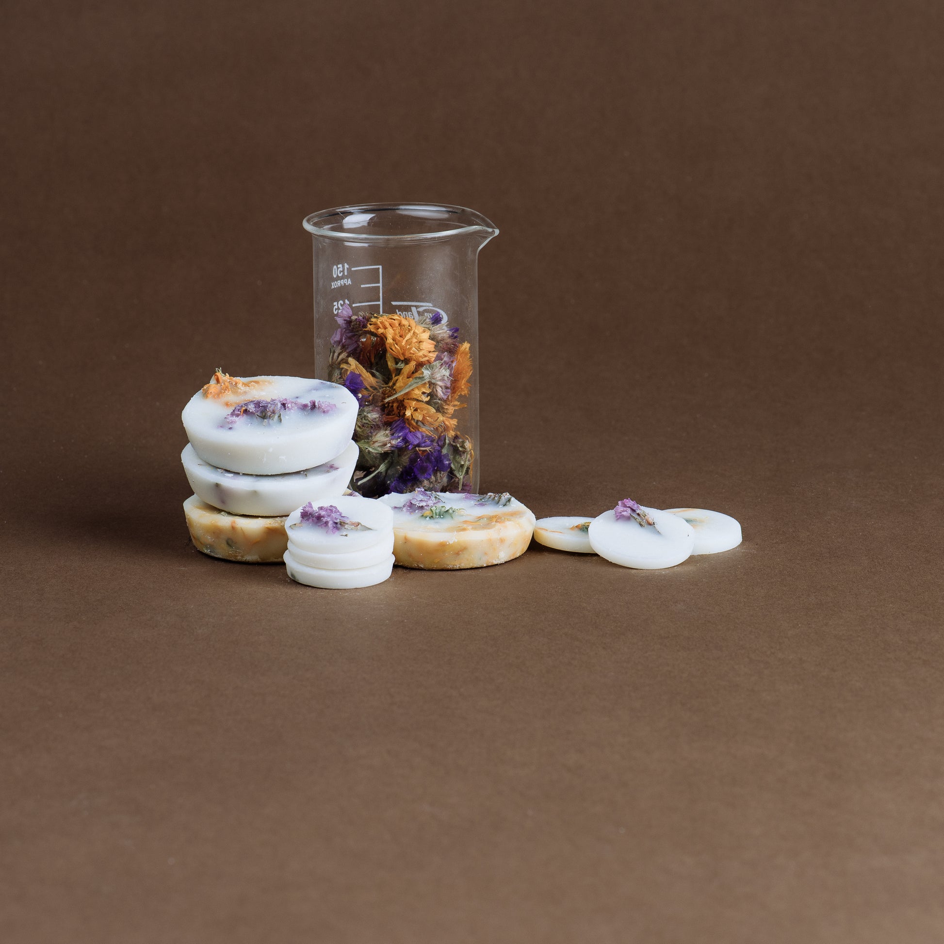 Soy wax rounds are decorative design element what can be placed in any room, shelf or drawer. Rounds can also be used in potpourri burner.